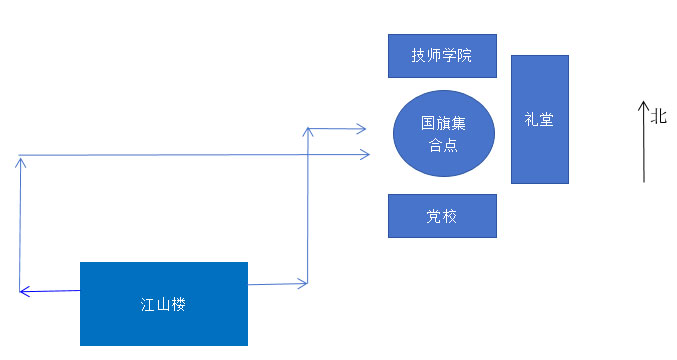 地点:江山楼(主演练区)、技师公司国旗广场(集合点)。
